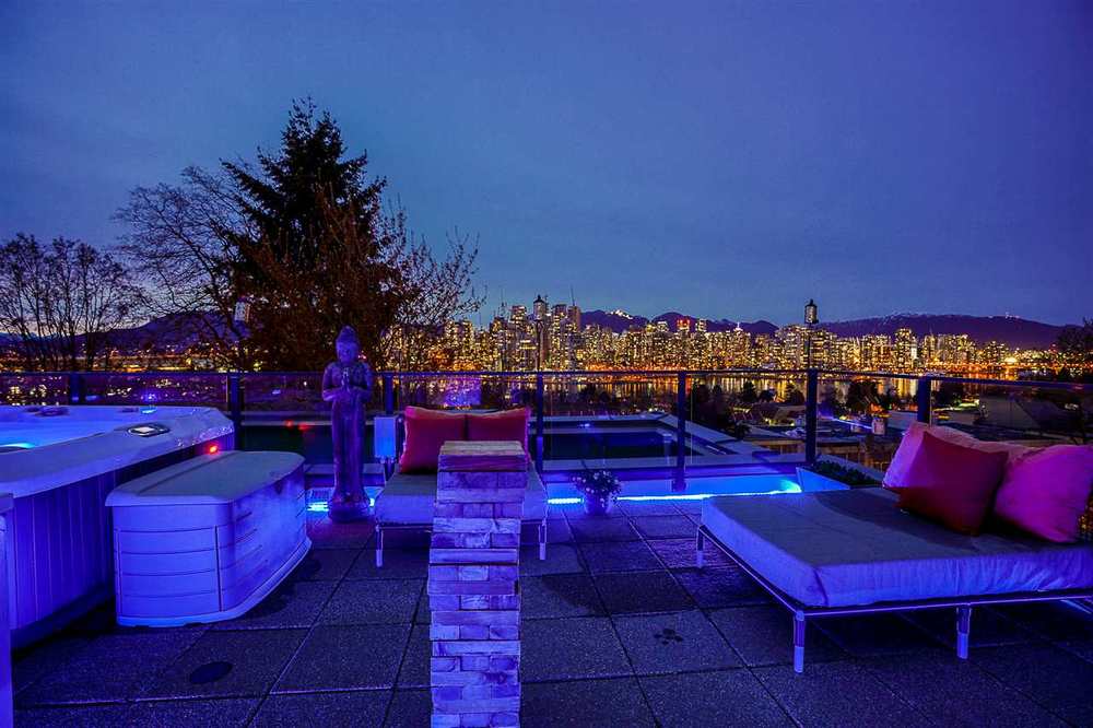 ENTERTAINERS DREAM LOCATED ON W7TH AT SPRUCE. THIS EXQUISITE TOWN HOME SPANS OVER 4 LEVELS, WITH THREE BEDROOMS. PATIO OFF KITCHEN LARGE AMAZING ROOFTOP DECK. HIGH END APPLIANCES LIKE SUB ZERO FRIDGES, WOLFE GAS COOKTOP EXTRA LONG KIT ISLAND MAKE HOME ENTERTAINMENT A JOY. FINELY APPOINTED ENSUITES FEATURING RAIN SHOWER HEADS, SEPARATE DEEP SOAKER TUBS SLEEK LIMESTONE TILE. 2 U/G PARKING DIRECTLY ACCESSIBLE FROM THE HOME SECURE BIKE STORAGE. THIS COVETED WEST SIDE LOCATION OFFERS UNOBSTRUCTED VIEWS OF FALSE CREEK BEYOND FROM THE ROOFTOP DECK WHILE SITTING IN THE HOT TUB OR BBQING. PEDESTRIAN BIKE-FRIENDLY AS IS SITS NEXT TO A DEDICATED BIKE ROUTE ACROSS FROM CHOKLIT PARK.